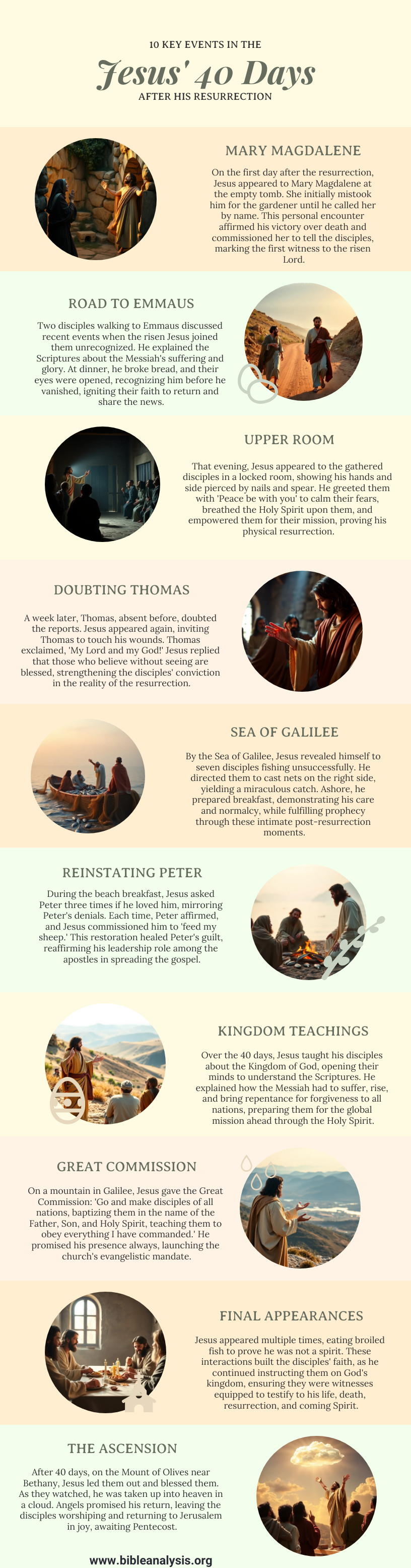 In conclusion, the 40 days that Jesus spent on Earth after his resurrection were filled with profound teachings, appearances, and preparations for his followers. These days were instrumental in solidifying the faith of the disciples and setting the stage for the spread of Christianity.