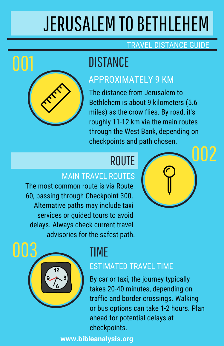 A1: The distance between Jerusalem and Bethlehem is approximately 5-6 miles (8-9 kilometers).